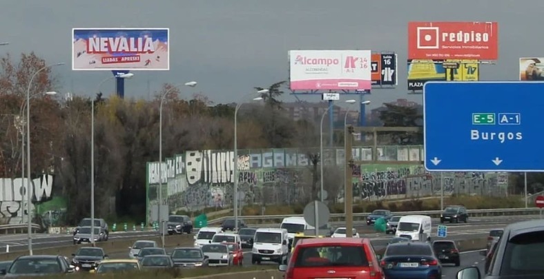 Sí, y además en ubicaciones muy potentes. Aunque dentro de la almendra central no se permiten vallas, justo en los anillos exteriores hay una gran variedad de soportes. Es el caso de vías como la M-30, M-40, M-45 o M-50. y también en accesos clave como la A-1, A-3 o A-6. Son zonas con muchísimo tráfico diario, ideales para impactar tanto a los vehículos que entran como a los que salen de la ciudad.